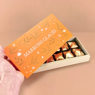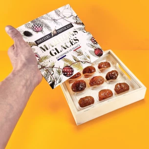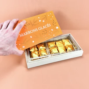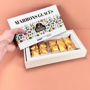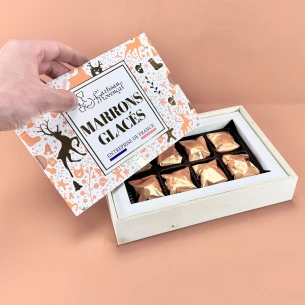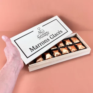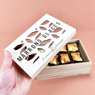 Coffret en bois de 10 marrons glacés 200g.