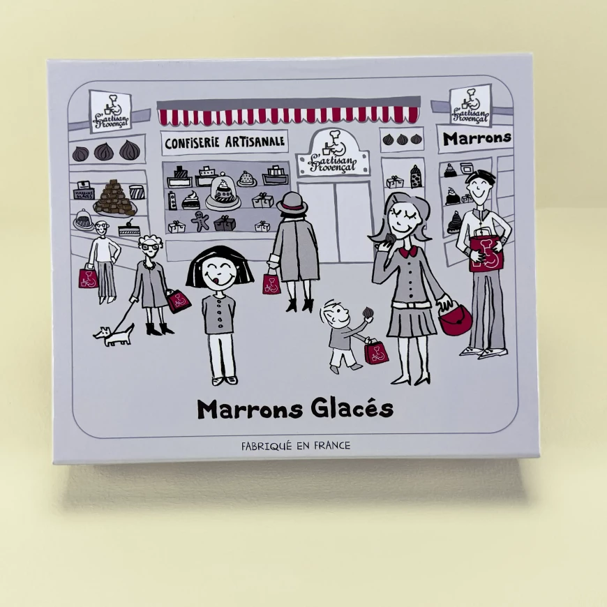 Boîte cartonnée "collection cadeau gris" de 16 marrons glacés 320g.