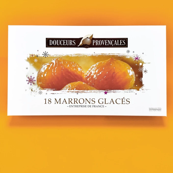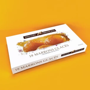 Savourer un marron glacé ça ne suffit pas, « il faut en déguster au moins deux ou trois » diront les grands amateurs ; voilà pourquoi nous avons pensé ce format à 18 pièces, pour se faire plaisir et ne jamais se retrouver en panne.