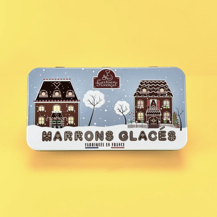 Boîte en métal de collection "Fête foraine" de 8 marrons glacés 160g.